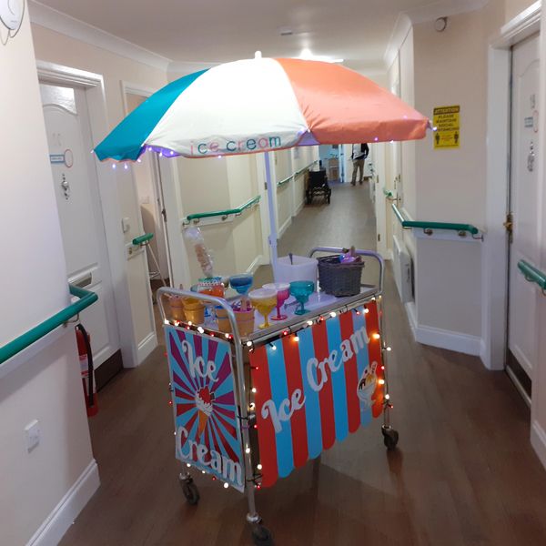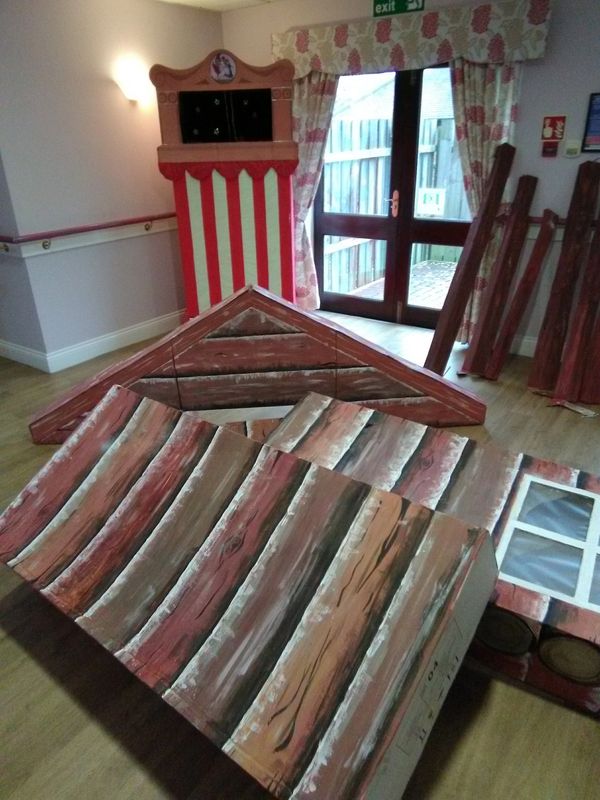 The role of Activity Co-Ordinator actually became something of a labour of love and gave me a tremendous sense of job satisfaction. I set-up an Arts & Crafts workshop and armed with a seemingly endless supply of surplus cardboard boxes, paint, glue and sticky-back plastic, we set about recreating some of the resident’s most cherished memories. Eat your heart out Blue Peter… (see photos below).