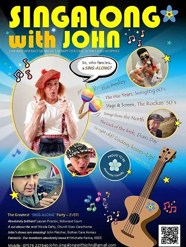 But perhaps SINGALONG with JOHN's most defining feature are the numerous "madcap" characters to emerge during each performance. Each one being representative of a particular period in time (be it musical or historical) which adds a generous slice of fun and nostalgia to every session.